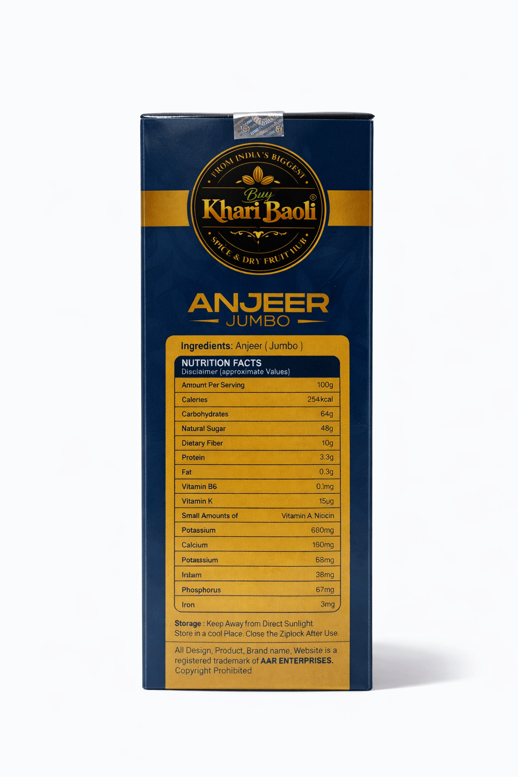 Indulge in the luxurious sweetness and robust texture of our Jumbo-sized Anjeer from Buy Khari Baoli. Carefully selected from the finest fig trees, our Jumbo-sized Anjeer offers a decadent experience with its plump and succulent nature. Bursting with essential nutrients such as fiber, vitamins, and minerals, it not only satisfies your sweet cravings but also nourishes your body. Whether enjoyed as a standalone snack or incorporated into your favorite recipes like desserts, salads, or savory dishes, it adds a touch of elegance and richness to every bite. Trust Buy Khari Baoli for premium-quality Jumbo-sized Anjeer, perfect for those seeking a truly indulgent fig experience that leaves a lasting impression.