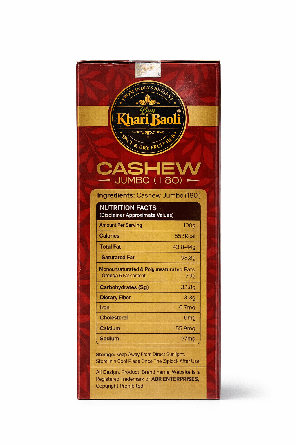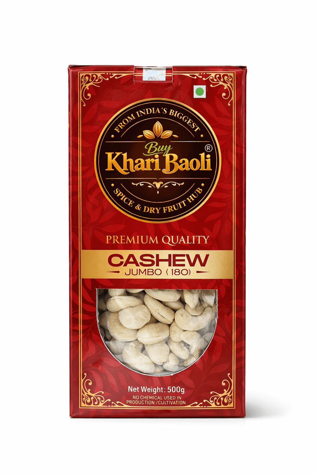 - Kaju No. 180 (Jumbo Size Cashews) are sourced for their superior taste and texture.