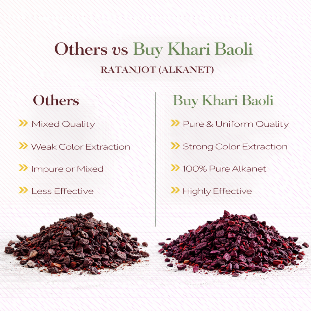 Ratanjot is a natural red dye derived from the roots of the alkanna plant. It is traditionally used in culinary applications, cosmetics, and herbal remedies for its coloring properties and mild medicinal benefits.